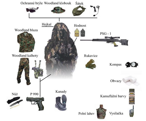 Odstřelovač musí zamaskovat i výstroj a výzbroj. Maskování však nesmí bránit používání těchto předmětů.